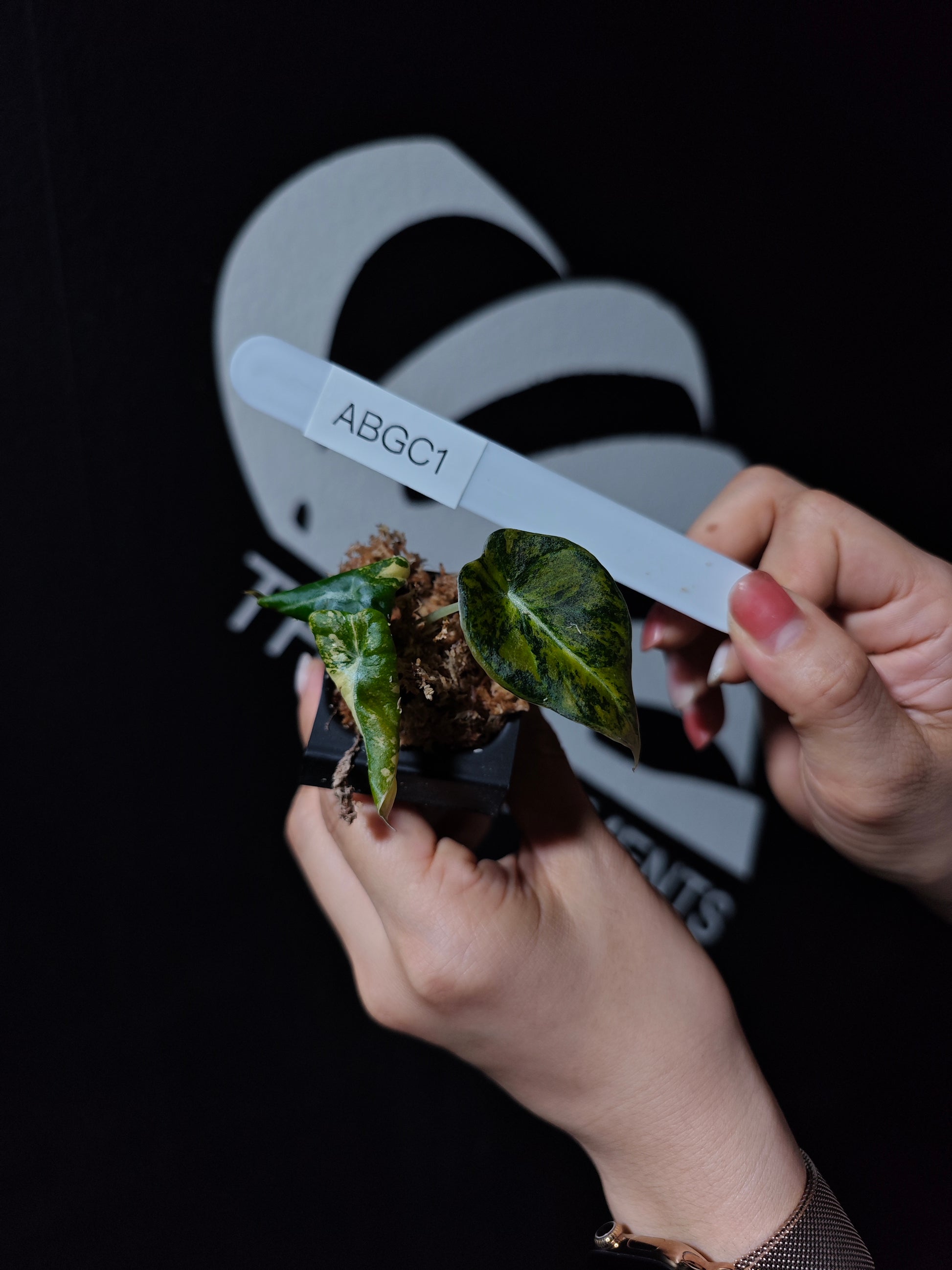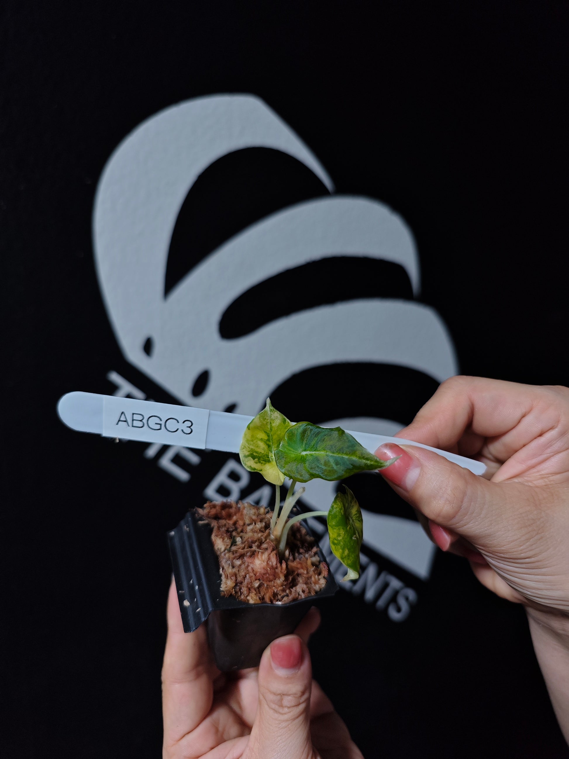 A striking and rare variety of Alocasia Black Velvet, known for its deep, velvety black leaves accented with beautiful gold variegation. Due to the characteristics of Black Velvet Variegated, the leaves can sometimes exhibit a slight pinkish tone, while the gold variegation may show hints of orange, adding even more complexity and beauty to the plant’s dramatic appearance. The combination of these colors makes the Black Velvet Gold Variegated a highly sought-after variety among collectors.