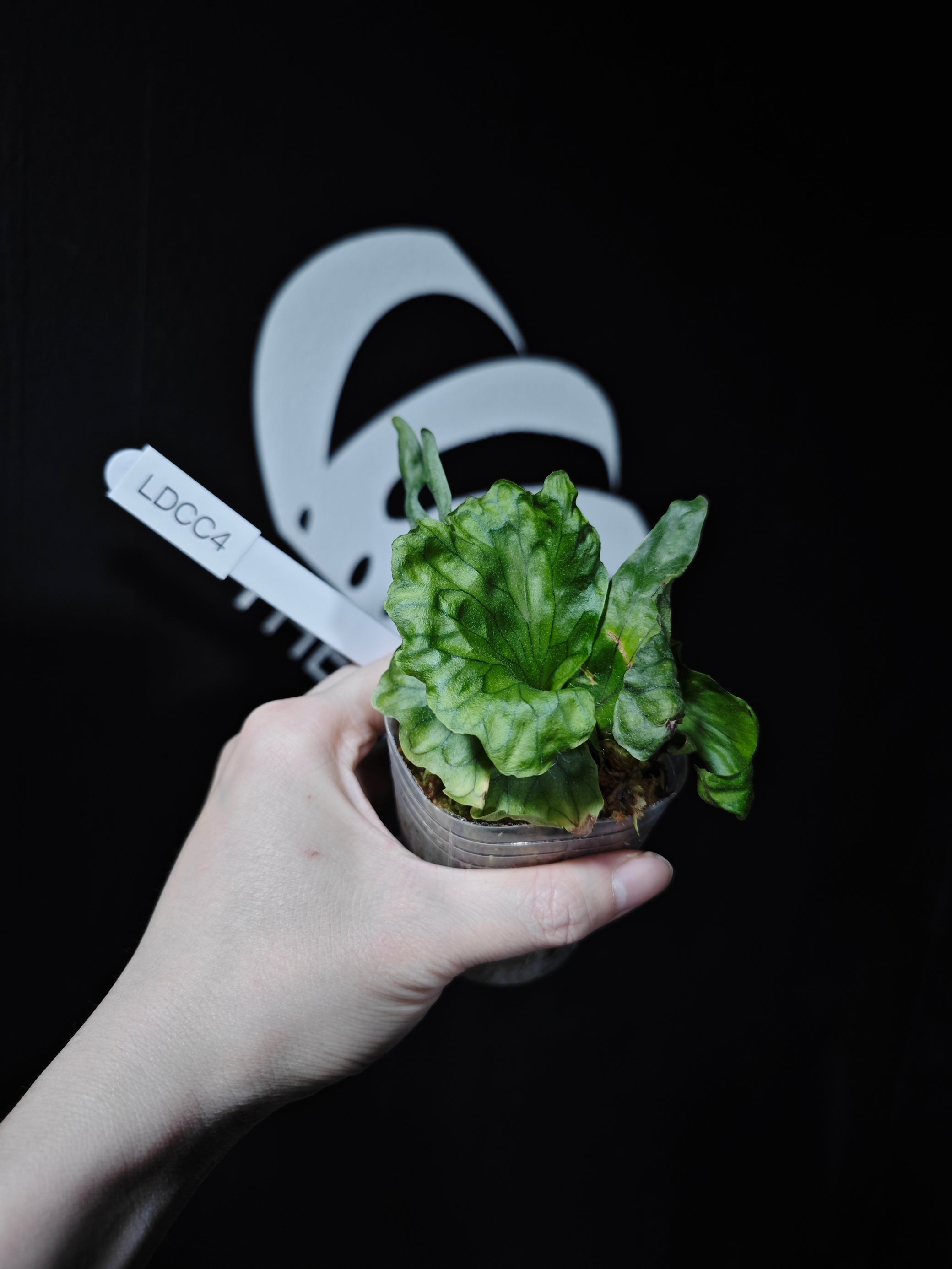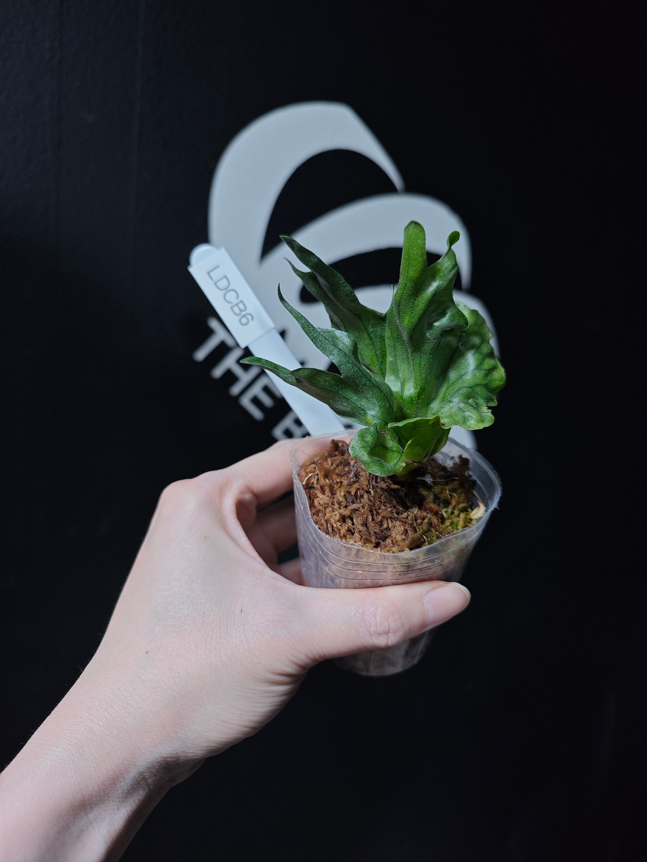 Platycerium wandae is one of the largest known staghorn ferns, native to Papua New Guinea and prized for its massive, upright shield fronds and wide fertile fronds. The Dwarf form is a selected or mutated individual exhibiting naturally compact growth—smaller shield fronds, shorter lobes, and a tighter overall structure. Despite the size reduction, it maintains the distinctive vertical growth posture and soft green velvet texture of the species.