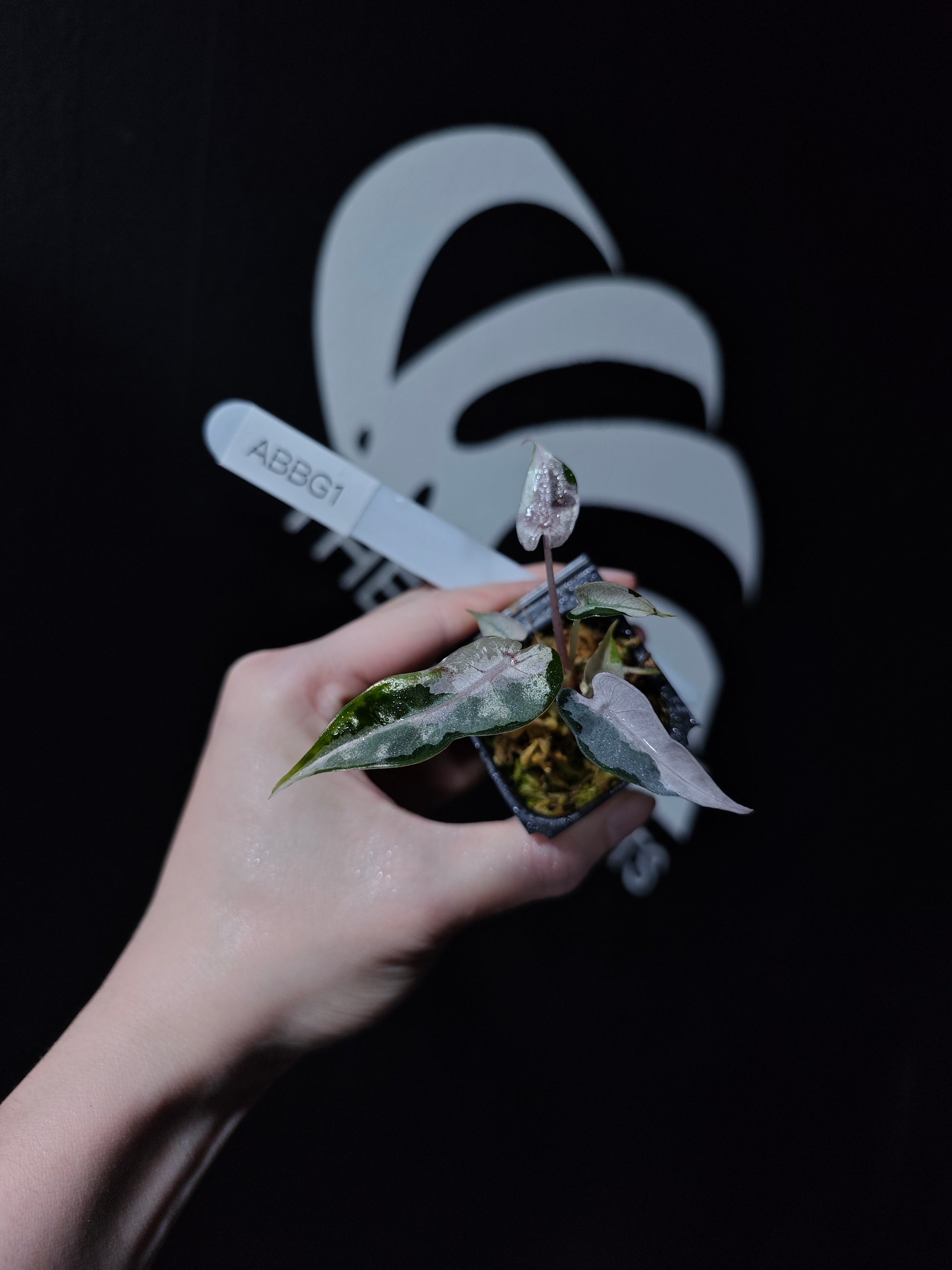A striking variety of Alocasia Bambino, known for its compact size and bold, heart-shaped leaves with beautiful variegation in shades of white and pink. The Bambino Variegated features contrasting patterns of green, white, and pink, giving it a unique and vibrant appearance. Its smaller size and dramatic variegation make it a perfect addition for collectors who appreciate stunning foliage in a manageable form.