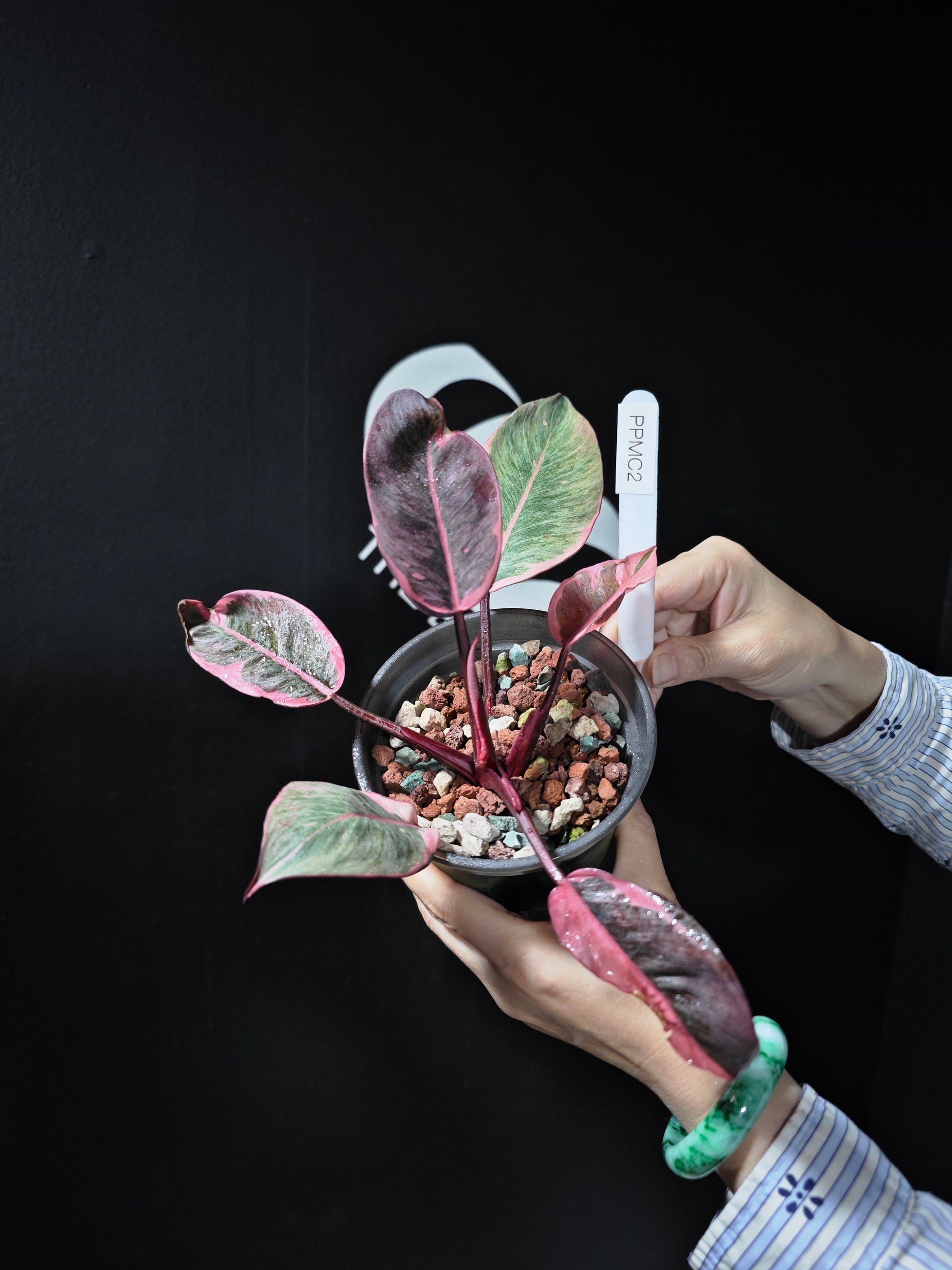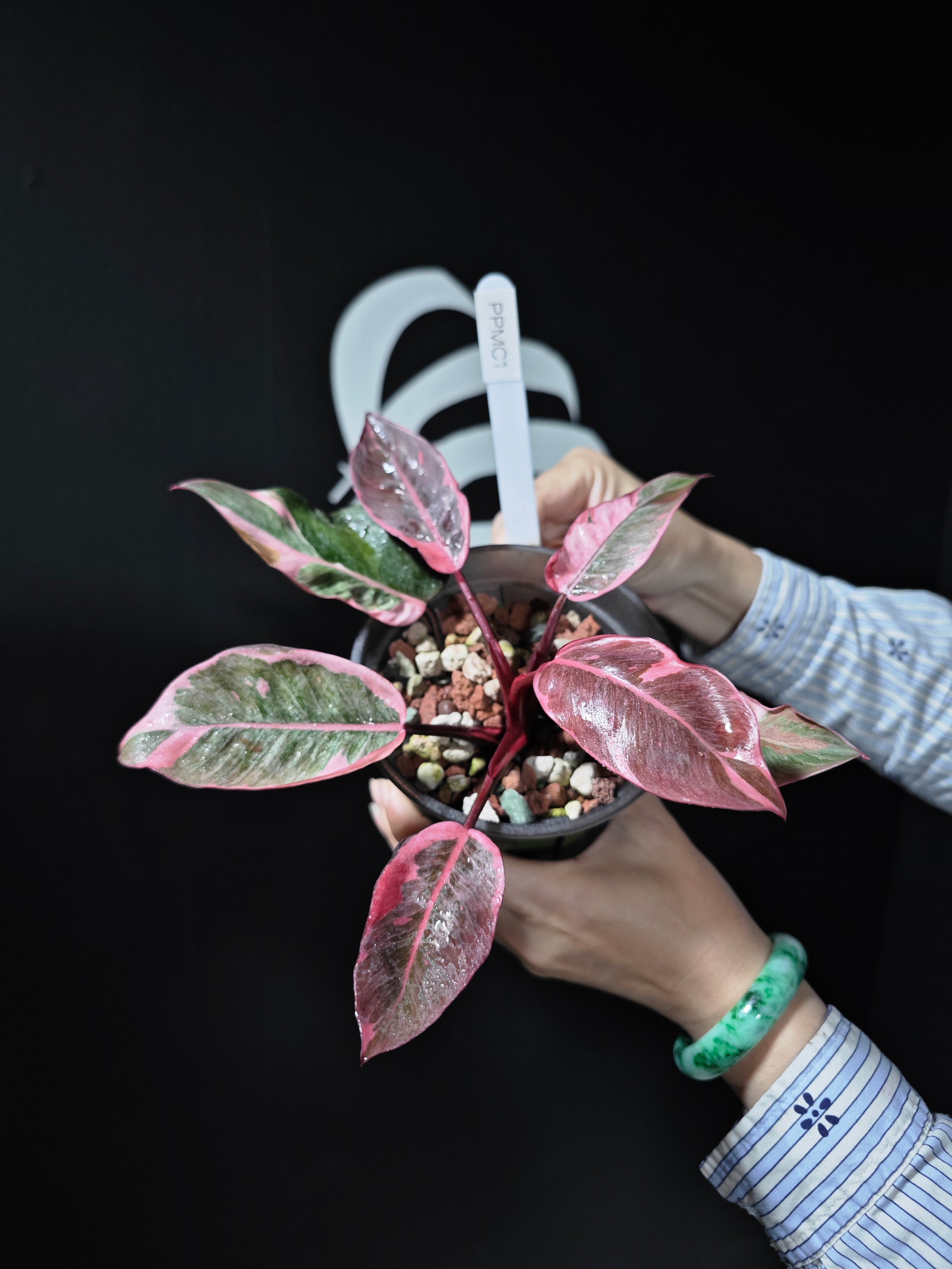 Philodendron Pink Princess Mutation requires careful attention to light, humidity, and watering. The whitening effect in the variegation makes the plant sensitive to light, and it should be protected from direct sunlight to prevent damage. Consistent humidity is essential to maintain the soft, muted color and white borders. Regular watering with well-draining soil is key to keeping it healthy, but overwatering should be avoided to prevent root rot. This variety is best suited for experienced plant owners who can provide the right conditions for its unique appearance and subtle beauty.