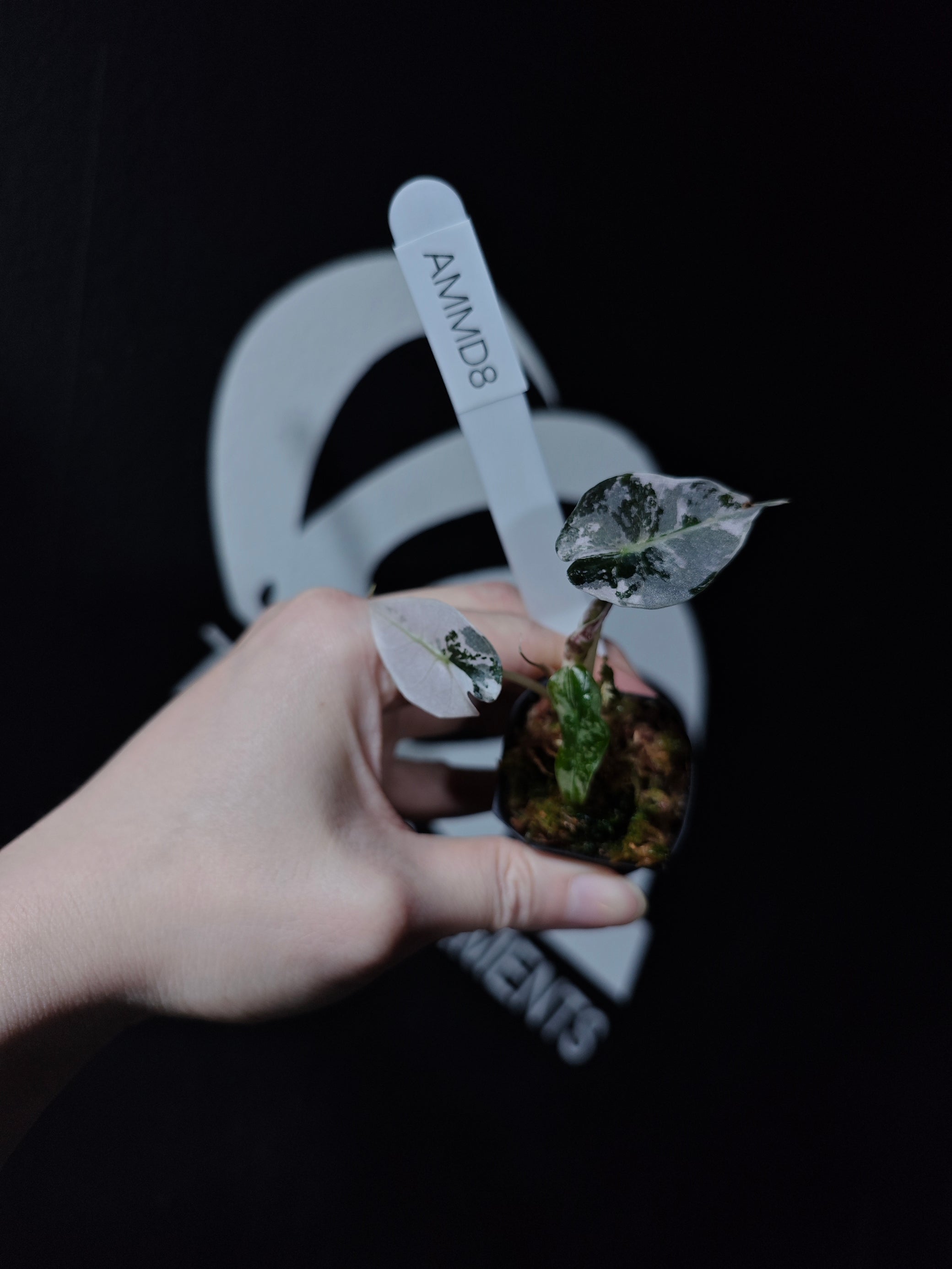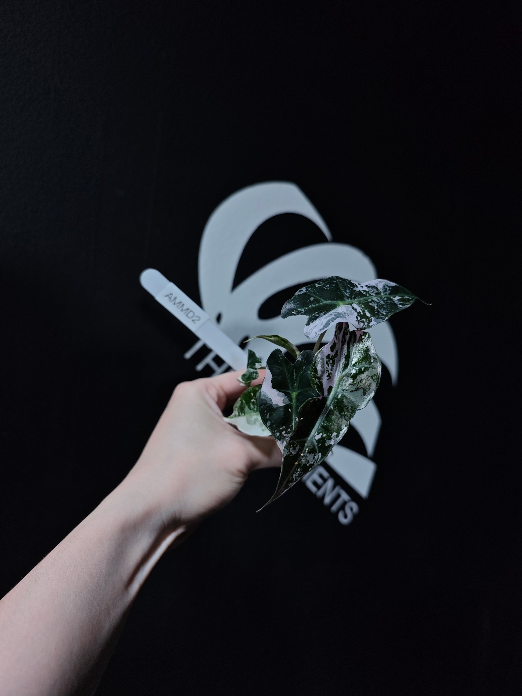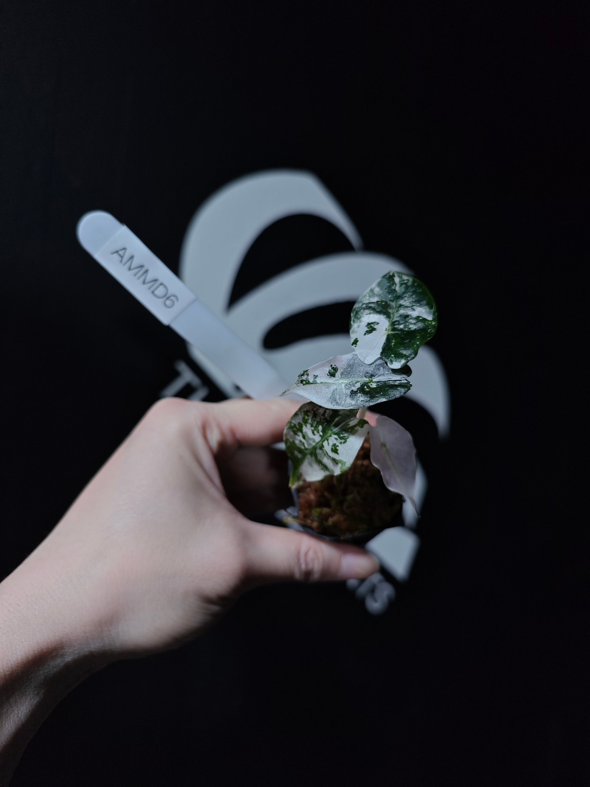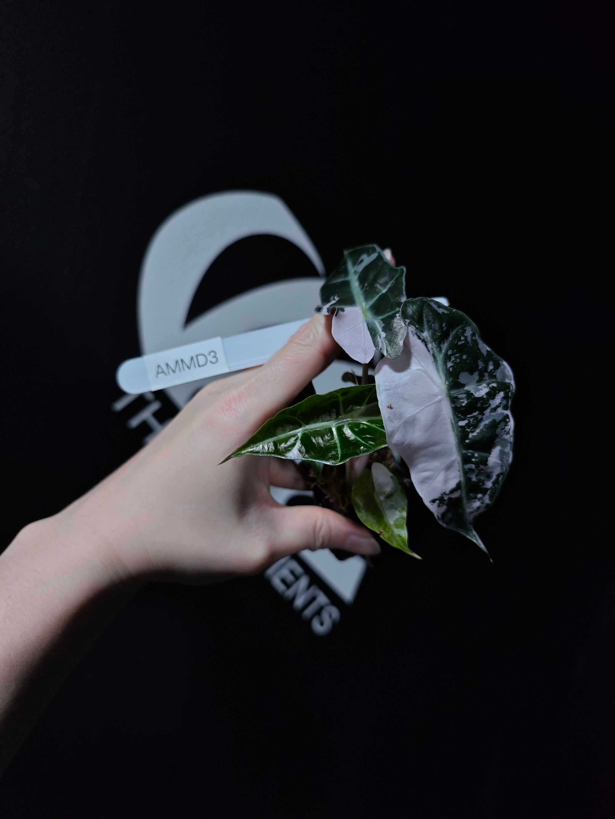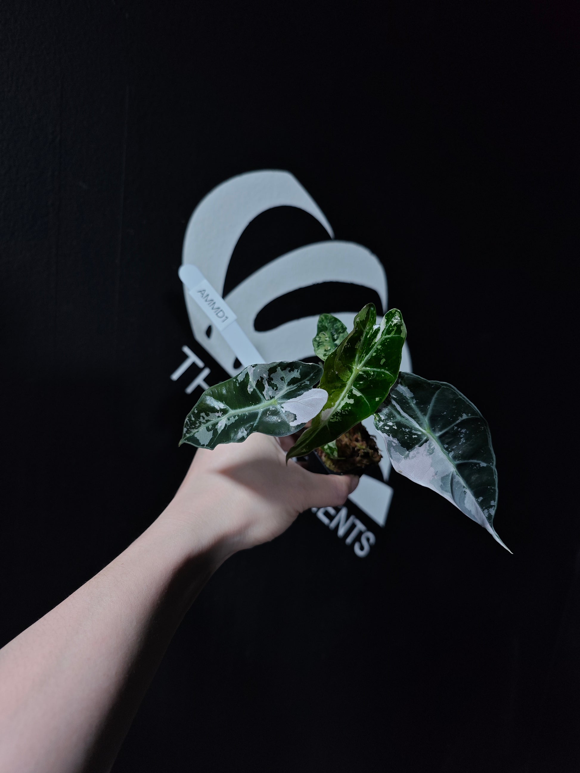 A striking variety of Alocasia Amazonica, known for its bold, heart-shaped leaves that feature beautiful variegation in shades of white, cream, and green. The leaves are glossy with prominent veining, making this plant a standout in any collection. The unique variegation adds an extra layer of beauty to the already eye-catching Amazonica, giving it an elegant and dramatic appearance.